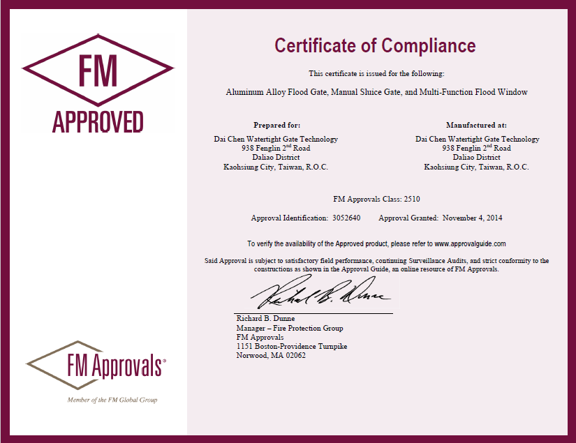FM認証を取得した止水板は、世界的にも高品質で確かな防水性能を備えた製品と認められています。