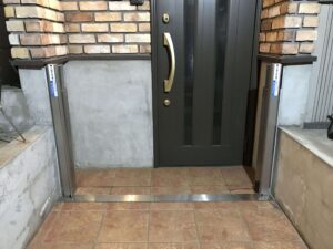 これは東京都内では比較的よく見られる設計で、敷地条件の関係上、道路より一段下がった玄関構造になるケースがあります。しかしその反面、大雨時には雨水が流れ込みやすいというリスクがあります。